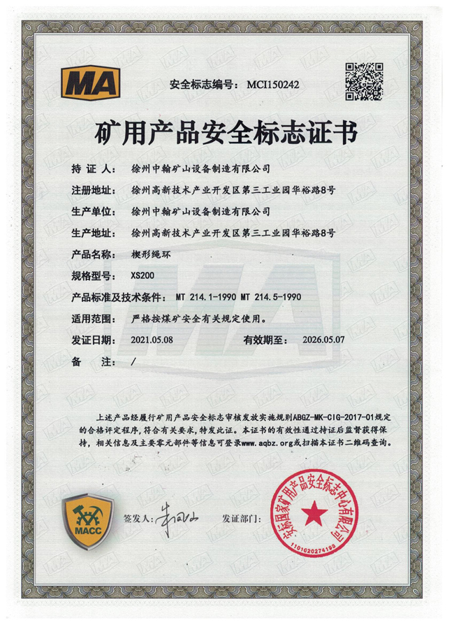 XS200楔形繩環(huán)煤安證書