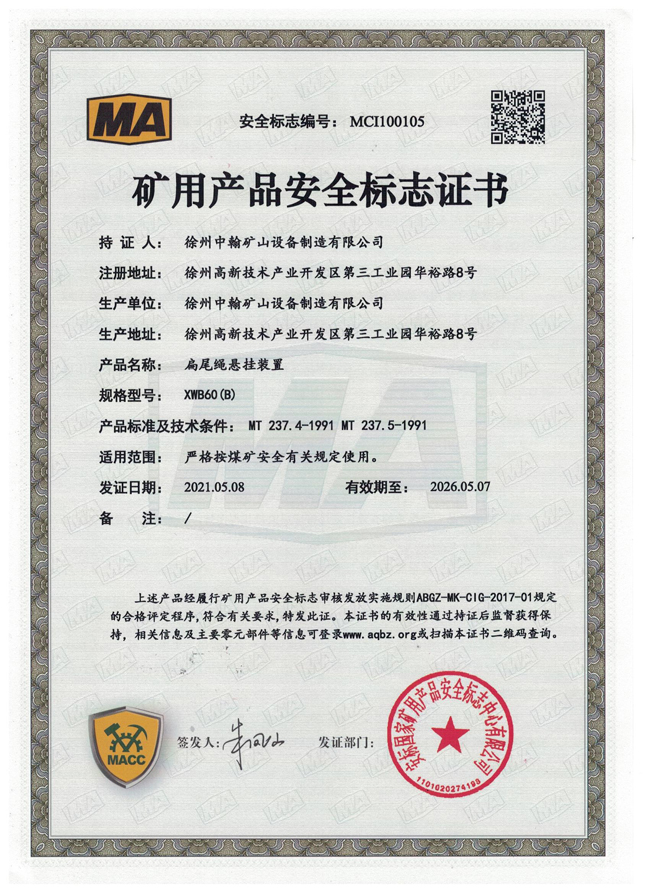 XS110楔形繩環(huán)煤安證書